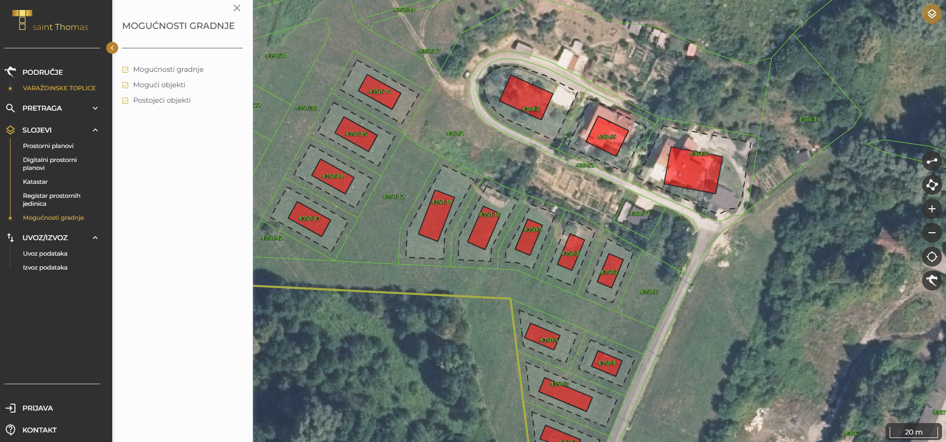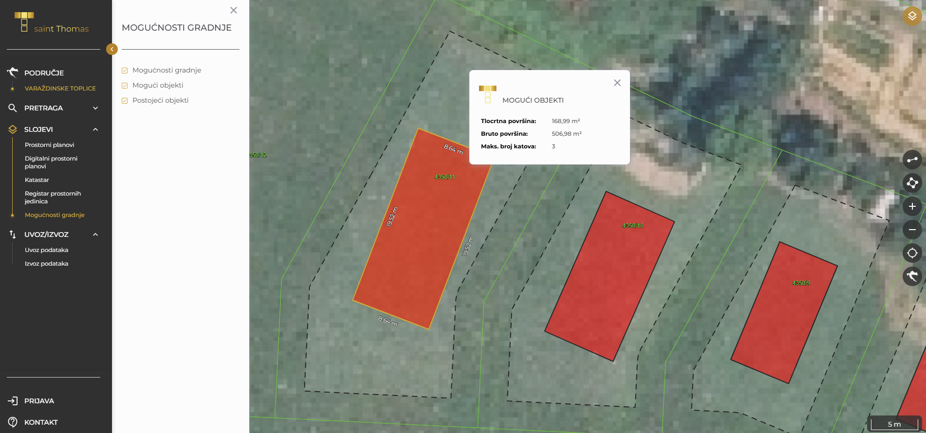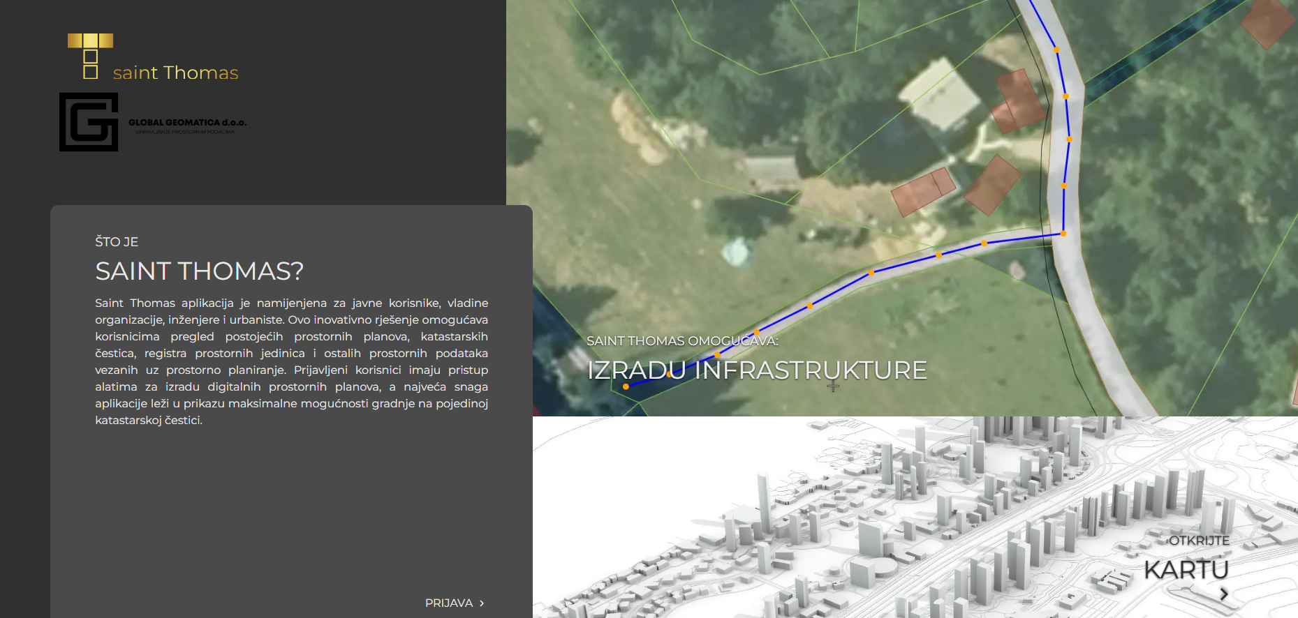 Saint Thomas aplikacija inovativno je web GIS rješenje koje omogućava korisnicima pregled postojećih prostornih planova, katastarskih čestica, registra prostornih jedinica i ostalih prostornih podataka vezanih uz prostorno planiranje. Osim pregleda, omogućena je izrada grafičkog dijela digitalnih prostornih planova. Nova generacija izrade prostornih planova predstavlja značajan iskorak prema suvremenom, digitalnom i efikasnijem sustavu prostornog planiranja u Republici Hrvatskoj.