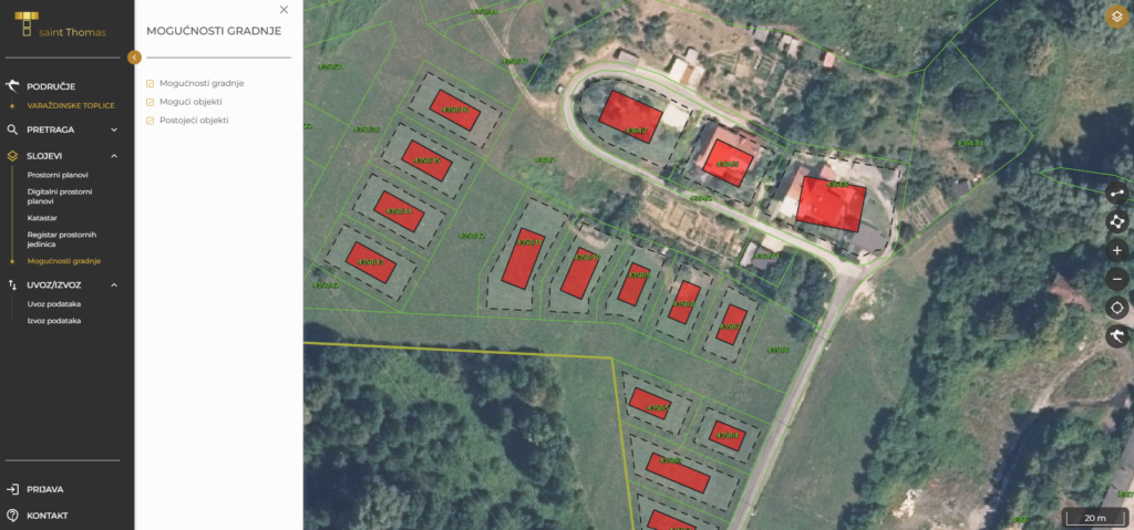 - mogućnosti gradnje (mogući objekti, postojeći objekti).